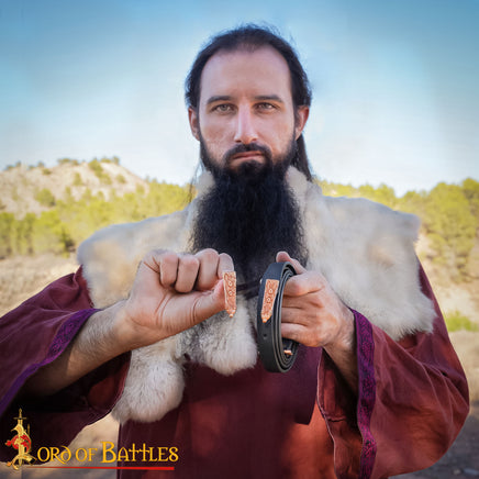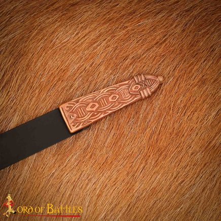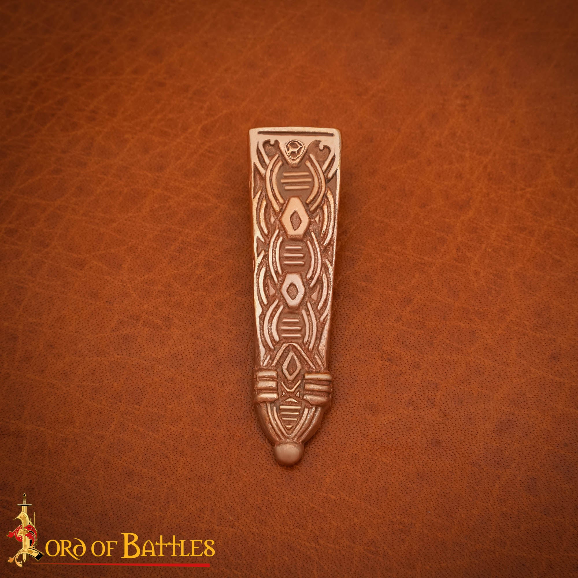 Making a belt from scratch or adding a finishing touch to one you already have? This decorative brass strap end is suitable for belts between 15 mm wide. Made from solid bronze the fitting is approximately 5 cm in length and 1.5cm in width. This buckle is most suitable for early middle ages, Viking and Rus era belts.