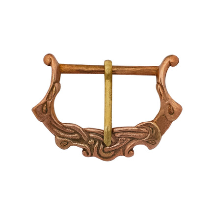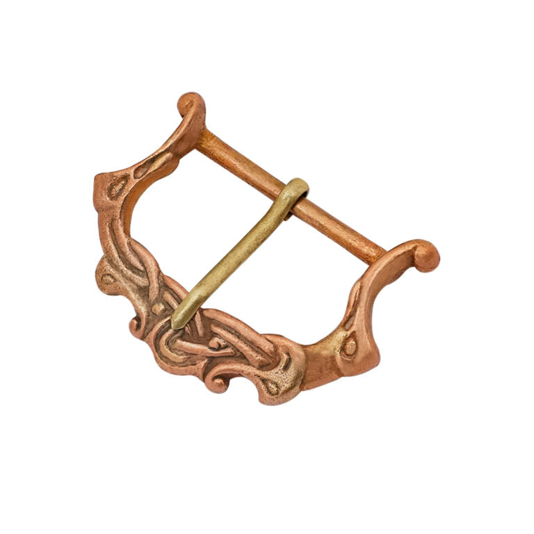 This solid bronze knotwork buckle is inspired by original designs from the Viking Age, found between the 9th and 11th centuries. Its interwoven motifs echo the serpent-inspired knotwork seen in Viking jewellery and clothing fittings.