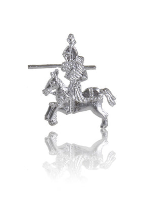 The badge depicts a jousting knight and was most likely a “tournament Badge,” which were sold at tournaments as souvenirs to fans. Badges similar to this can be found throughout Europe in the high middle ages, this replica is based on one found in Reimerswall dated 1350-1400.