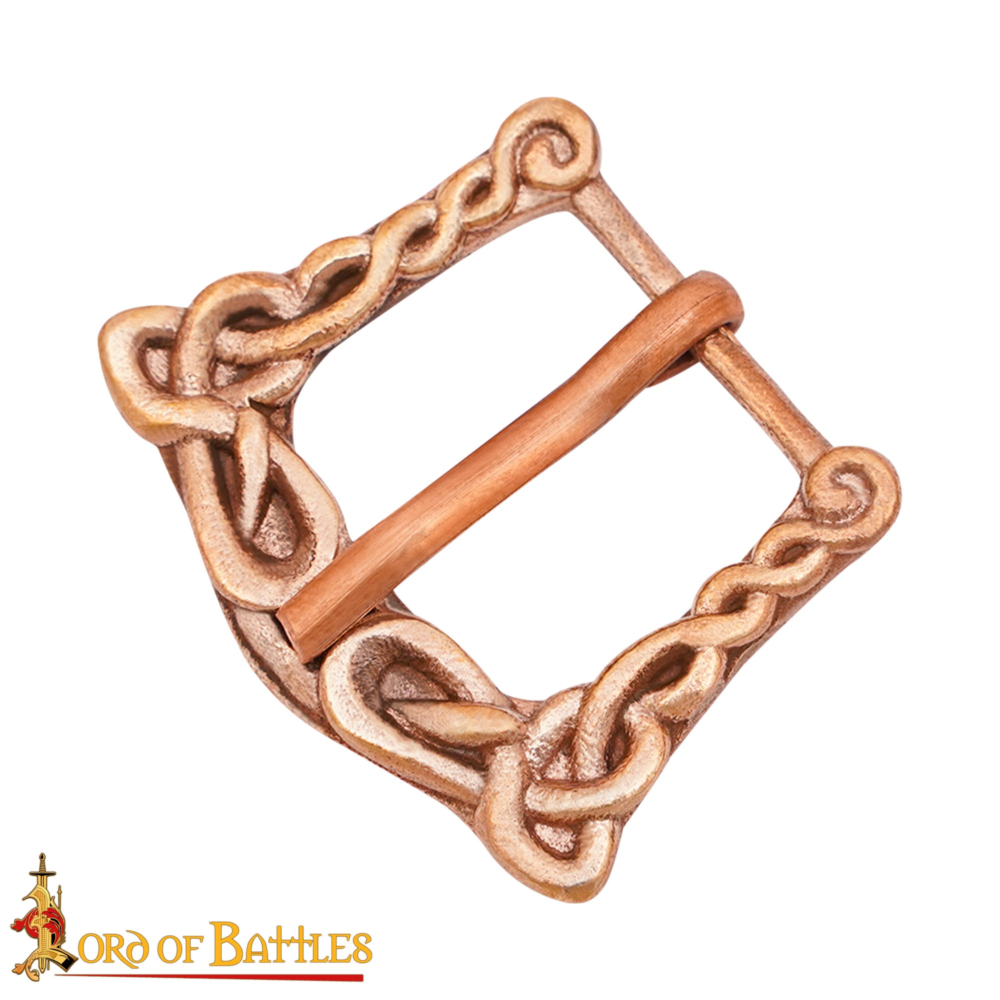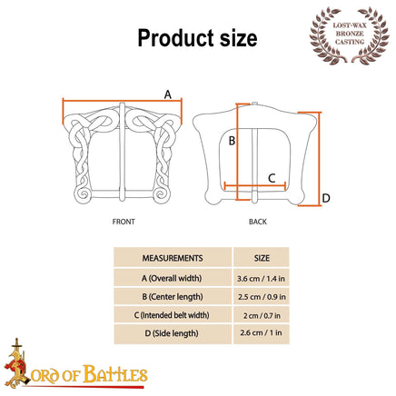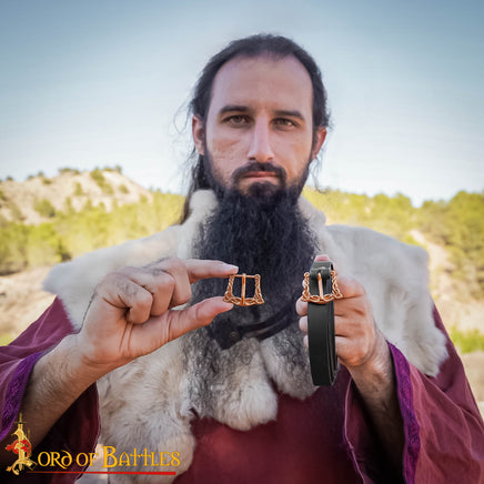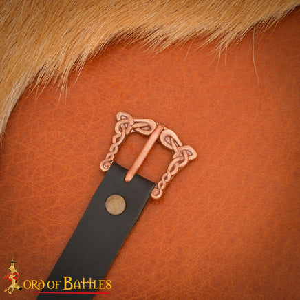This buckle features decorative knotwork and is suitable for straps 20mm wide. This buckle is most suitable for early middle ages / Viking era belts.