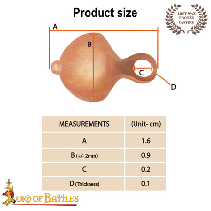 Historically, buttons were more than just fasteners. They were a sign of wealth. These buttons have a rich bronze colour characteristic of medieval pieces, bringing an authentic sign of status to your garments. The buttons are small and lightweight, making them ideal for securing cloaks, tunics, or other period garments without adding too much bulk.