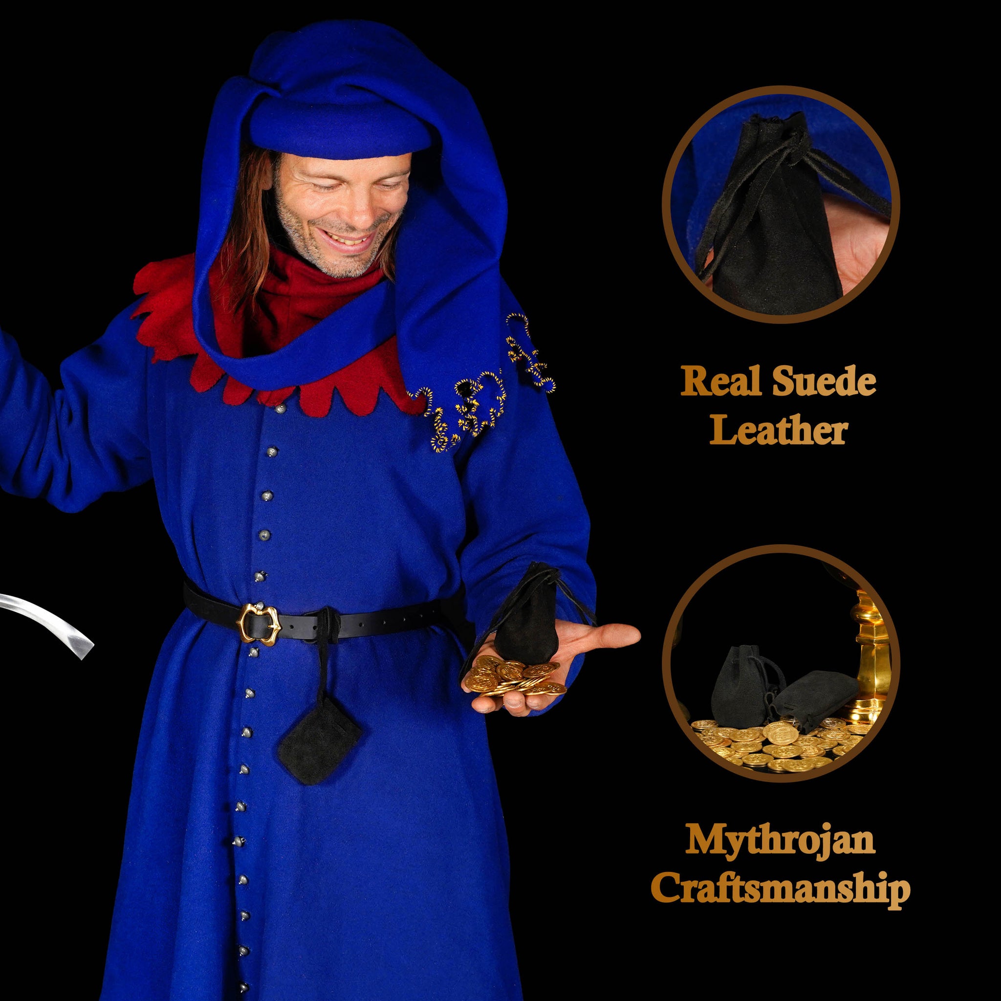 This set of two small suede leather pouches measures 3.5”×2.5” (8.8cm×6.3cm) and 4”×3” (10.1cm×7.6cm) and are the perfect companion for any adventure. Sturdy, reliable, and easy to close, will keep your coins, dice, keys, and precious belongings, safe during your epic weekends. Whatever your favourite universe or character, its authentic look, and adaptable shape will prove more than useful in any event or even in your everyday life!
