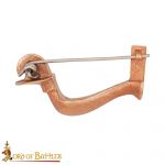 This Roman-style Bronze Fibula is a reconstructed artefact from early Imperial Rome, based on archaeological designs from the first to third centuries AD. It is designed to tie cloaks, robes, or tunics and has a unique curved bow and flared head, which are common features of fibulae discovered across the Roman provinces.