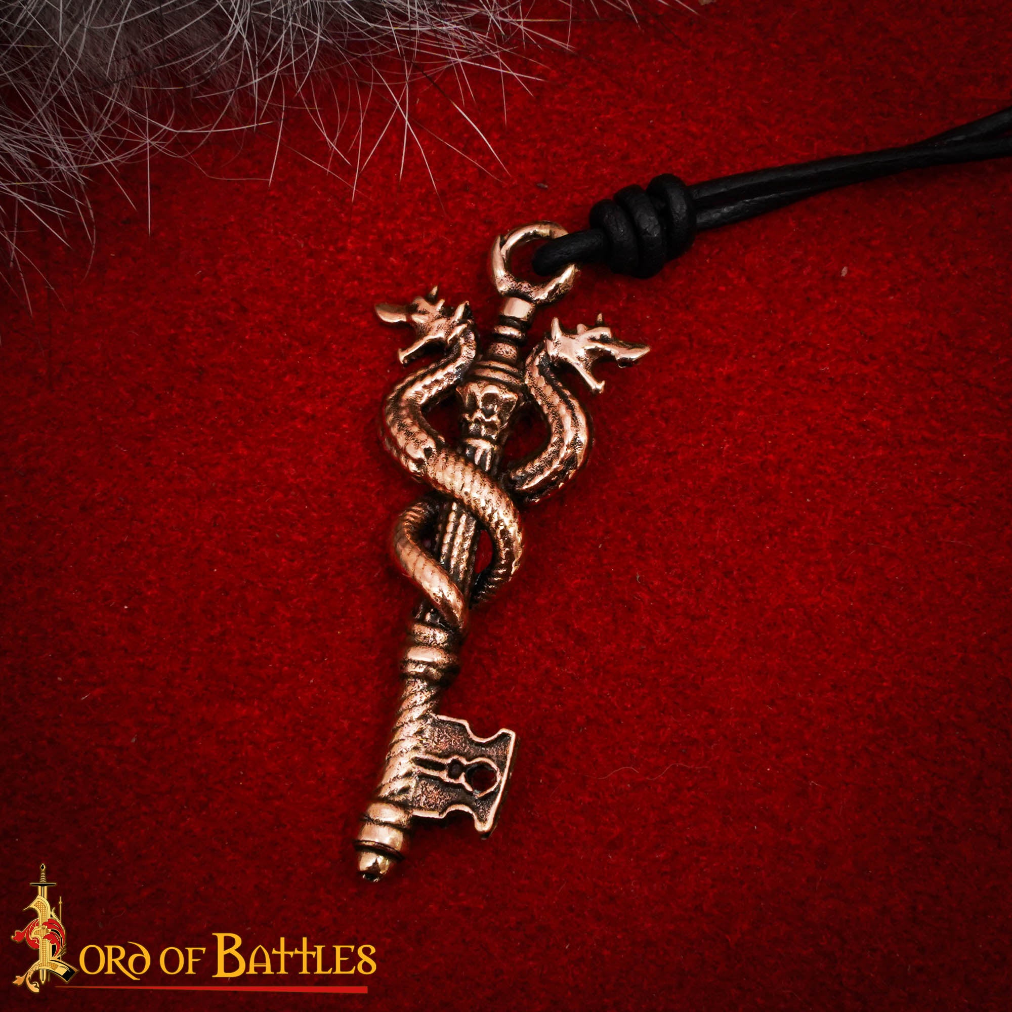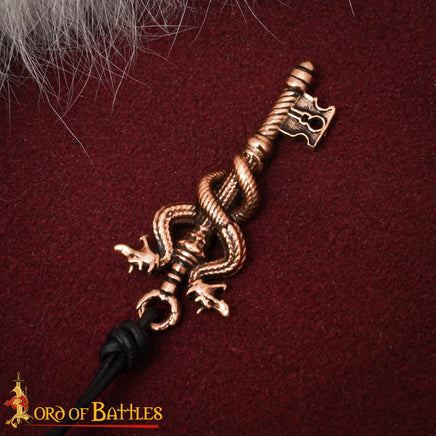 This pendant features entwined snakes protecting a key.