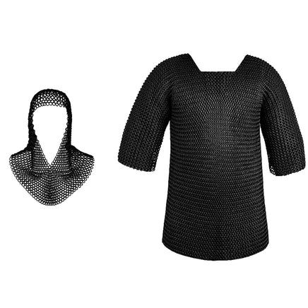 Chainmail Shirt with Coif Blackened - XL Size