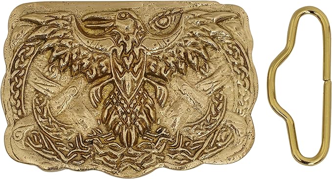 This Mythrojan's Viking Raven Buckle measures 4” × 2.7” (10.2 cm × 7 cm) and is perfect companion for your favourite costume. The buckle comes with a 2.5”x 1” (6.5 cm x 2.6 cm) hook for reliable closure. The buckle and hook are ideal for belts up to 5.5 cm (2.1”) wide.