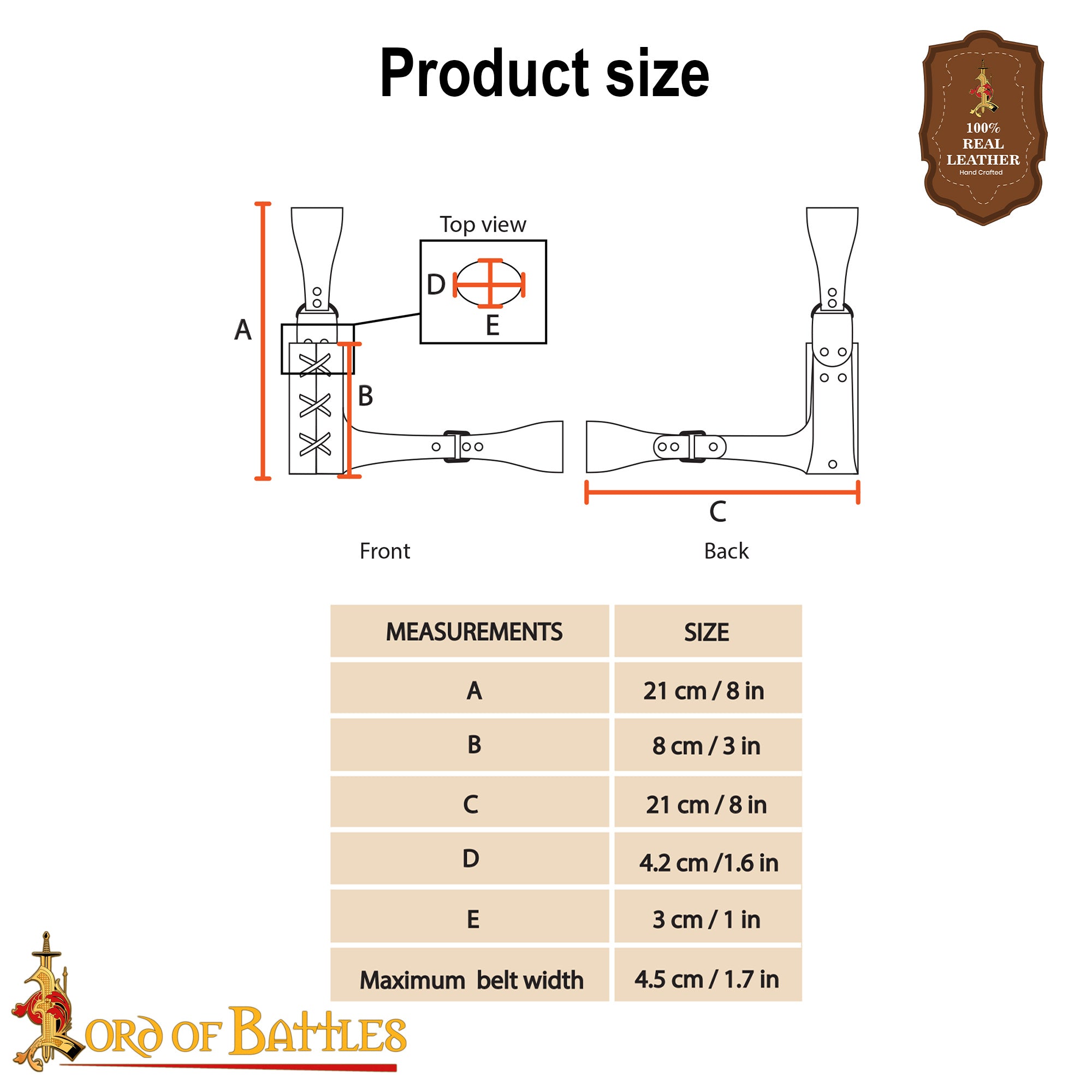 The two loops are large enough to fit wide renaissance belts of up to 6cm.