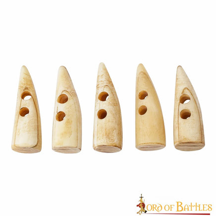 Handcrafted from ethically sourced bone, these toggles can be used for fastening Viking or Medieval shoes, bags or clothing. Great for making your own Viking, Anglo-Saxon and Celtic historical clothing and costume. They can also be used as an accent or decorative features in crafts or jewellery.