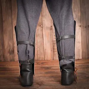 The open back greaves are most suitable for 14th to 15th century historical representations.