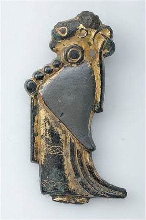 A reproduction of a Viking Valkyrie pendant found in a grave find in Tuna, Alsike, Uppland, Sweden. SHM 10035: III (F23). (Object 108947).